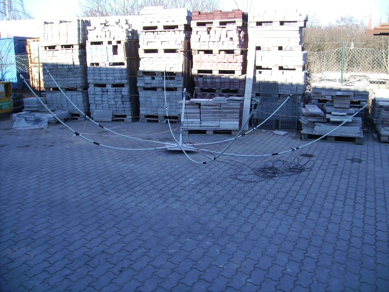 Der Aufbau der Antennen gelingt immer schneller. Die Schnüre und Antennendrähte des Hexbeams sind auf eine große Rolle aufgerollt und können so schnell eingehängt werden, so dauert der Aufbau nur ca. 1 Stunde. Der Dipol für die langen Bänder ist ja eh schnell hochgezogen, so dauerte der Aufbau der Funktechnik am längsten. Durch eine Änderung der PC Aufstellung mussten noch einige Kabel im Funkschrank umgelegt werden und da passierte es dann, das Com Kabel der PTT Steuerung des TS 480 riss am Stecker ab. Nach einigen hin und her gelang es dann wenigstens das Ding im Digital-Vox Betrieb in Betrieb zu setzen. Leider viel aber die Vox nicht schnell genug ab, was immer wieder mal bedeutete das ein oder zwei Buchstaben der Antwort der Gegenstation verschluckt wurde. Nachdem die Probleme gelöst waren konnte ich dann gegen 18.00 Uhr mit dem Betrieb beginnen.