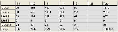 Auch wenn einiges beim Logcheck raus fallen sollte werden wir wohl unser minimal Ziel, eine Million Punkte erreichen. Vor dem Logcheck erreichten wir 1113 QSOs mit 107 DXCCs.