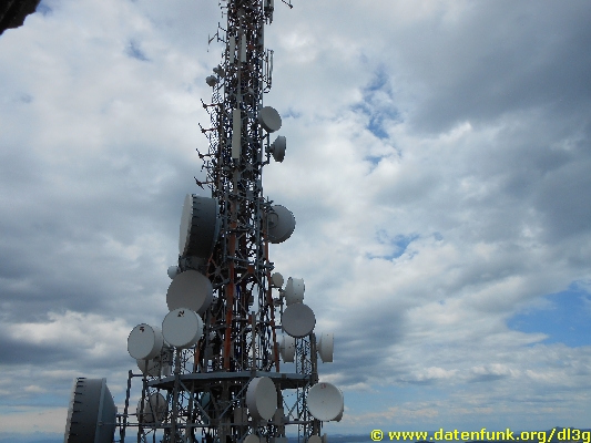 Besuch am Senderstandort die Verkabelung und Montagen entsprechen nicht gerade unserem Standart man kann auch einfach die Leiter am Turm erklimmen für noch besserer Aussicht im Haus ist auch ein 2m Relais untergebracht.