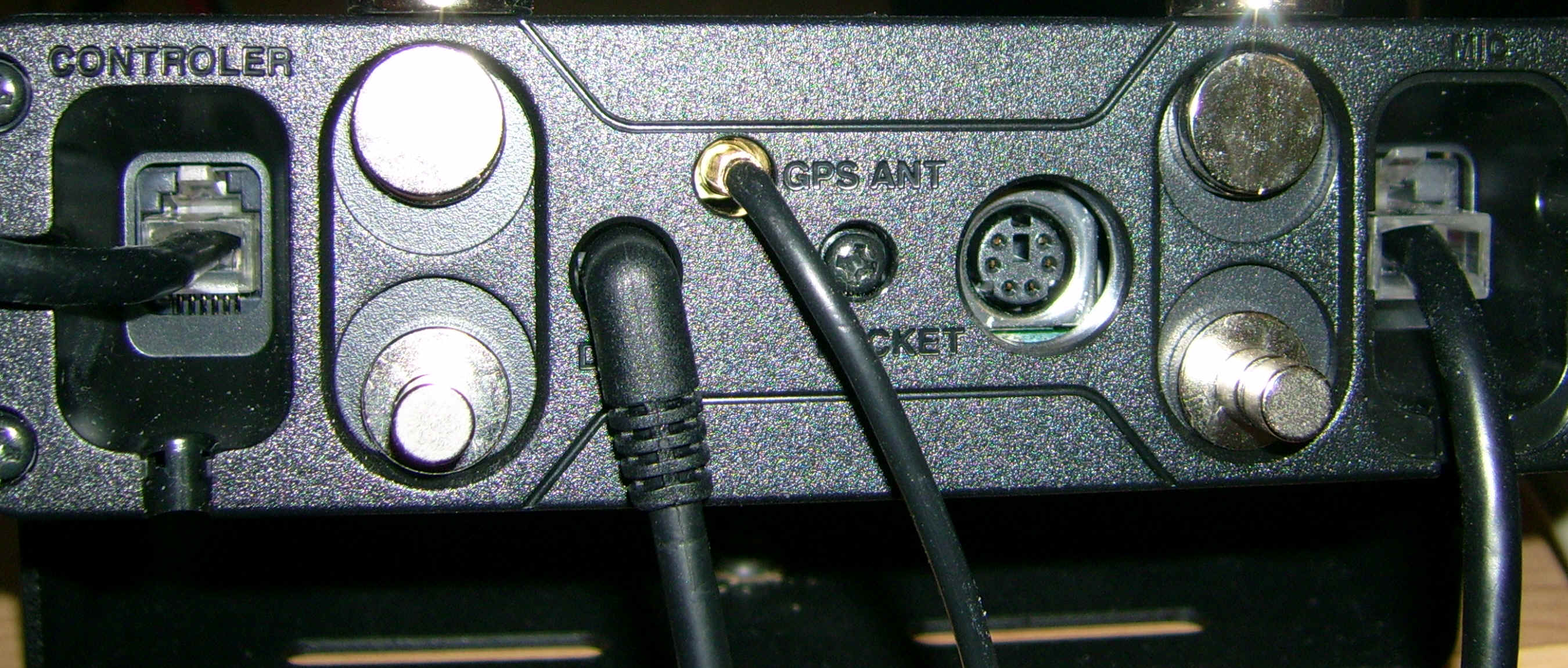 Wenn man so wie ich, das Gerät im Shack nutzen und das Display nicht absetzten möchte hat man wie schon beschrieben das Problem das hinterm Display die Stecker für GPS Maus, Packet Radio und Computer sind.